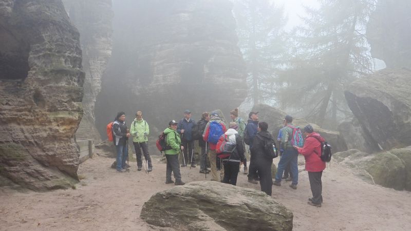 Tento výlet se uskutečnil 18.října. Jelikož se tento výlet připravoval a zajišťoval v předstihu,nemohli jsme nikterak ovlivnit počasí. I přes nepříliš vlídné počasí - v Tiských stěnách byla mlha,se výlet všem účastníkům velice líbil. Kouzlo Tiských stěn v mlžném oparu,které jsme v ten den měli bylo trochu jiné než za slunného počasí. Při putování po horizontu skal jsme si připadali jako v nebi,neboť nad našimi hlavami nebylo nic víc než bílo. Do údolí nebylo vůbec vidět. To účastníkům vůbec nevadilo, protože po procházce jsme zakotvili v teplém a příjemném prostředí restaurace. Zde účastníci společně zkonzumovali zásoby, které sebou měli. Našim německým přátelům nejvíce chutnali koláče a pečivo napečené našimi ženami a nám zase chutnala uzenina a šnaps, který přinesli němečtí kolegové. V dobrém rozmaru jsme se pobavili a po společné fotografii jsme se rozloučili. Na příští rok se již připravuje další setkání na německé a české straně.