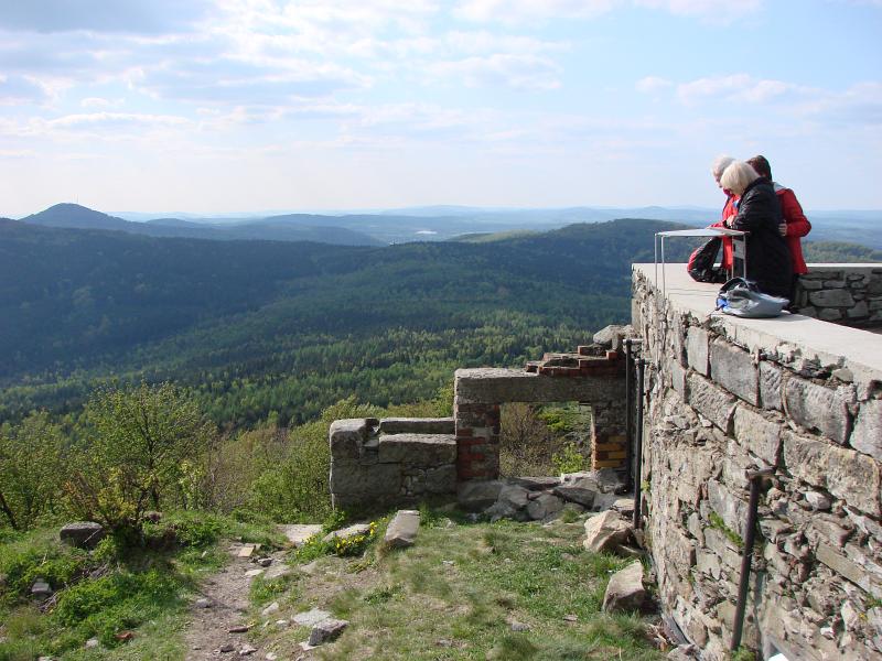 Sobota byla opět nádherná, co se týče počasí i náplně dne. Do Oybinu jsme přes sedlo Kammloch dorazili snad za hodinku. O to déle jsme se zdrželi prohlídkou stejnojmenného rozsáhlého hradu vsazeného do mohutné pískovcové stolové hory. Založení hradu je spjato s pány z Lipé a panovník Karel IV. zde založil v roce 1369 klášter Celestýnů. Neméně zajímavý je dřevěný kostelík v podhradí.