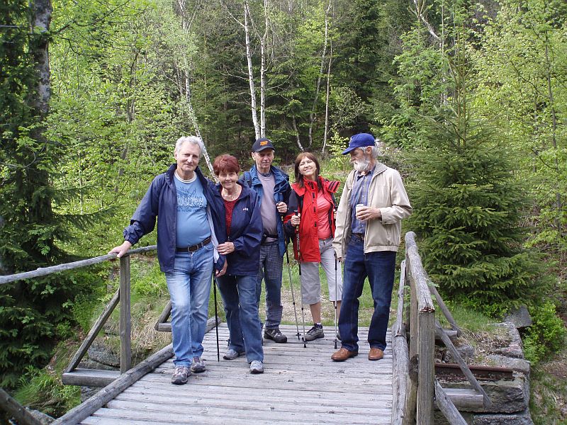 Počasí strašilo, zamířili jsme proto k Lemberku. Tady nás zastihl dešťový příval. Rychlejší z nás měli smůlu, na cestě ke studánce pěkně promokli. Váhavější se dívali na přívaly pěkně schovaní a dokonce s občerstvením! Další zastávka, muzeum v Novém Boru, s pohledem na historii i současnost obdivuhodné práce sklářů. V 15hodin jsme z náměstí Nového boru vyrazili za (už!) krásného počasí domů.