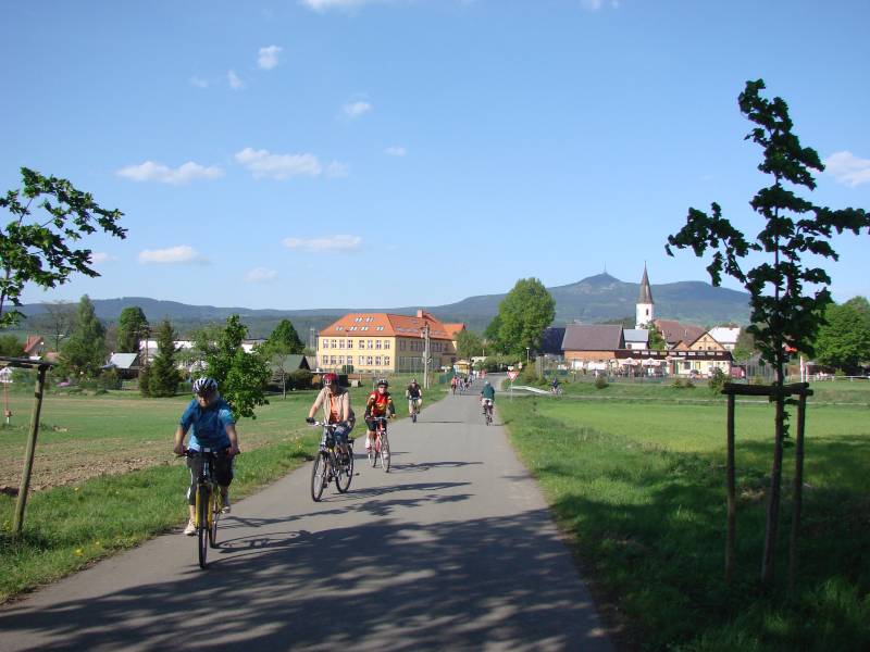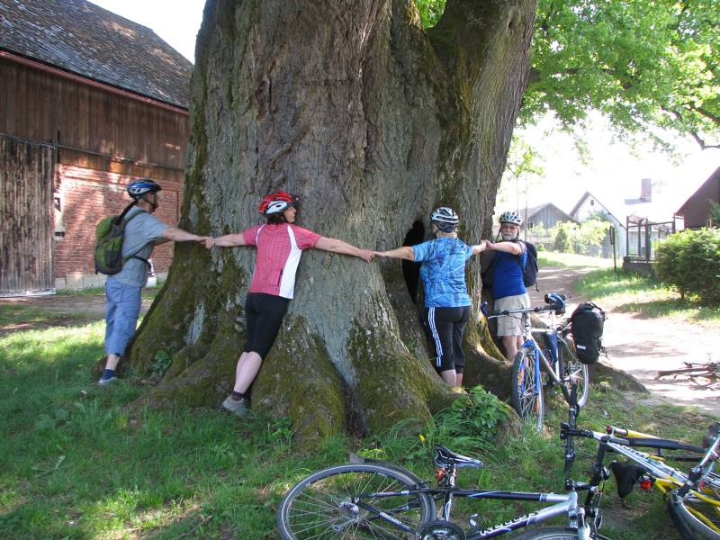 První občerstvovačka v Žibřidicích nás nenadchla, ale pitný režim byl dodržen. Po silnici přes Křižany jsme dorazili až k překvapení – krásnému úseku nové cyklostezky od Lesních domků do Osečné. Vynikající káva v cukrárně na náměstí nám dodala nových sil a tak jsme se vydali k pramenům Ploučnice. Toto prameniště je označováno jako jedno z nejvydatnějších ve střední Evropě. Další pamětihodnost jsme nalezli v obci Kotel. Sedm cyklistů muselo napnout síly, aby obejmulo památnou tisíciletou lípu. Pak nás čekal výstup k mimořádnému geologickému jevu – přírodní památce Čertova zeď. A již jen zpátky do Osečné, krátké občerstvení ve sportovním areálu, podvečerní posezení v minilázních Kundratice a zpět na večeři do kempu.
