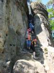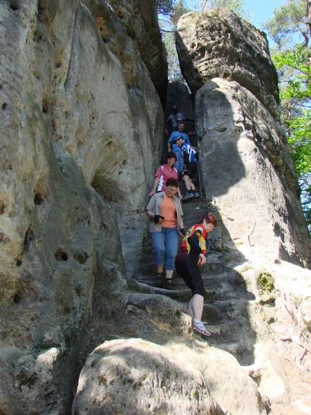 Sobota byla ve znamení menšího množství památek, zato nás provedla překrásným prostředím „savany“ v oboře Židlov. Na úvod jsme spíš šli, než jeli po písčité cestě do skalního útvaru „Skalní divadlo“. Krátké zastavení u pomníku na paměť tragické smrti generála Sochora a vzhůru na zbytky hradu Stohánek. Odtud pak již jen po asfatových cestách k oboře. Trochu jsme byli zaskočeni uzavřenými vstupními vraty, ale další vjezd již byl volný. Příjemná cesta Židlovskou oborou poskytla nádherné pohledy na dominantu kraje – Bezděz. Tam ale naše cesta nevedla a tak jsme zamířili na sever. V Mimoni občerstvovačka – doplnit tekutiny a stále na sever k pamětihodnosti Průrva Ploučnice nedaleko obce Noviny. Z neúspěšného pokusu v 16. století o vytvoření nádrže zbyla vytesaná soutěska zakončená tunelem. Odtud přes Stráž a Hamr na Jezeře zpět do kempu. Jiná, sportovněji laděná skupina se rozhodla změřit svoje síly se stoupáním na dominantu kraje – Ještěd. Večer nadšeně vyprávěli o sportovním zážitku, na druhé straně však byli zklamáni z prostředí na této tisícimetrové dominantě kraje.