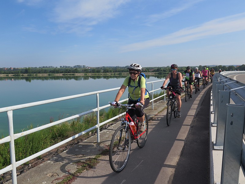 V pondělí jsme osedlali své oře a vydali se do Hrušovan po jižním okraji Novomlýnských nádrží. Cesta vedla po příjemných asfaltových cyklotrasách, ale také po polní cestě poznamenané minulými dešti. V Novosedlech v penzionu Kristýna byl právě čas na kávu. Krátké zastavení na odpočívadle u Čápů u Jevišovky. Cyklostezka nás zavedla do Hrušovan. Oběd v restauraci U Svídů byl výborný. Z Hrušovan nás čekal kousek po silnici, ale dál vedla nádherná cyklotrasa podél rezervace Vrbový háj do Jevišovky. Také pokračování lesem do Drnholce bylo v odpoledním žáru příjemné. Další trasa z Drnholce po hrázi byla náročná, protože teprve před Pasohlávkami byl kamenitý povrch nahrazen asfaltem. I tak část stezky obsazovali rybáři a pro nás to skončilo nepříjemnou kolizí.